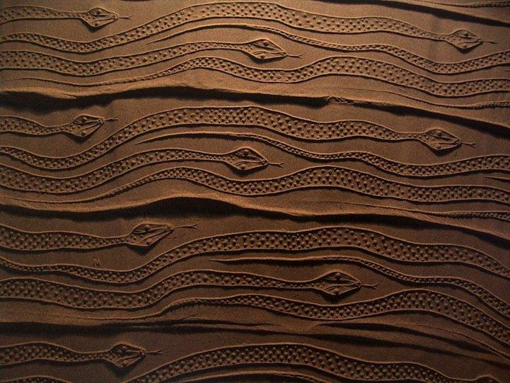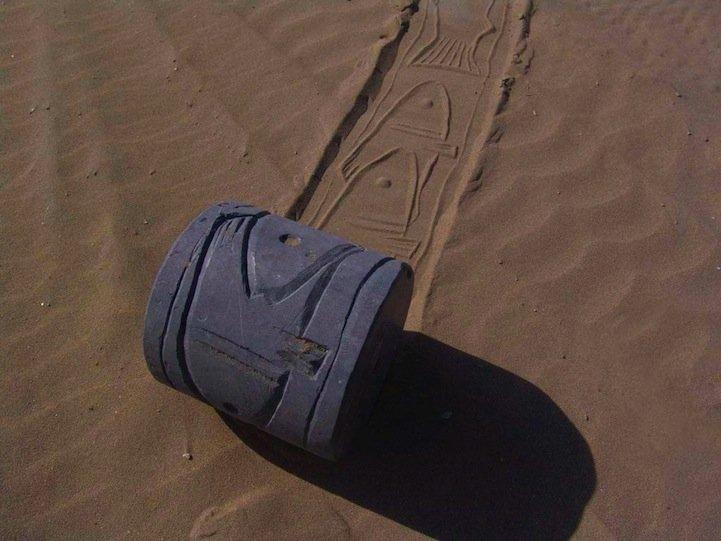 Ахмед Надальян пытается сочетать секреты древних ритуалов с современным искусством. Древняя техника печати основывалась на оттисках вращающихся цилиндров, которые оставляли повторяющийся рисунок. Наиболее популярны у Ахмеда, изображения живых существ и цветочные узоры. Мириады оттисков тянутся по пескам пустынь и пляжей.