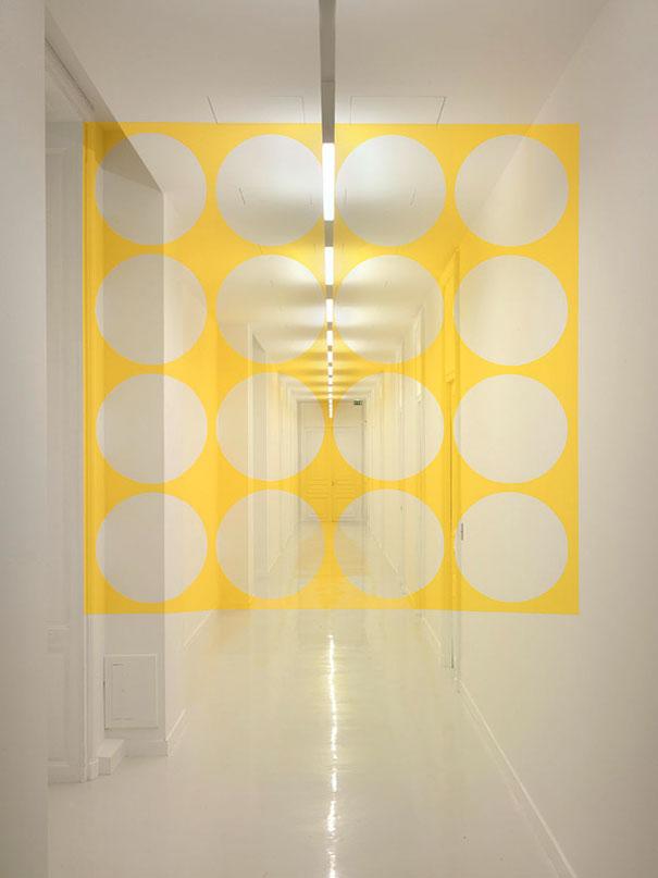 Предпочитает работать внутри городов, с различными архитектурными строениями, как снаружи, так и внутри них. Одна из самых известных работ – на фасадах домов в швейцарском городке Веркорен. Представляем вашему вниманию подборку удивительных и захватывающих работ швейцарского художника.