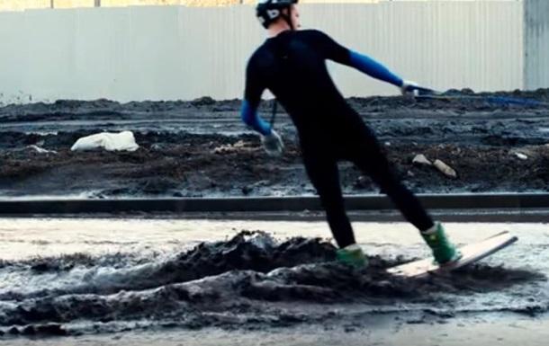 Челябинец прокатился на доске по уличной грязи (ВИДЕО)