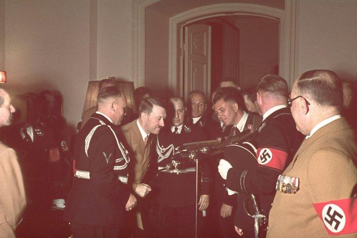 В тот день, на юбилее немецкого фюрера присутствовал основатель автомобильной империи Фердинанд Порше, который лично подарил Адольфу Гитлеру новую модель кабриолета Volkswagen. Другие гости, присутствующие на "мероприятии", также решили выделиться из толпы, подарив фюреру самолет "Condor", огромное количество украшений и драгоценных металлов. Вашему вниманию представляется подборка исторических снимков, от которых "нельзя отвертеться".
