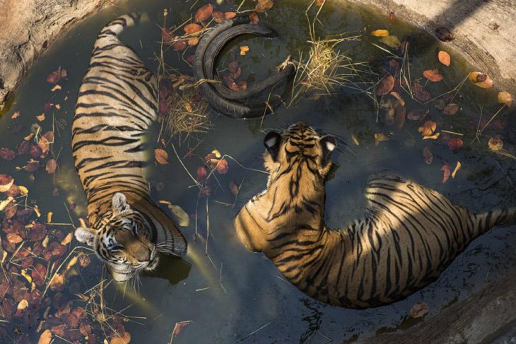Большую часть времени большие полосатые кошки проводят в клетках. И это печально: в природе самцы тигра ходят по территории в 100 кв.км.