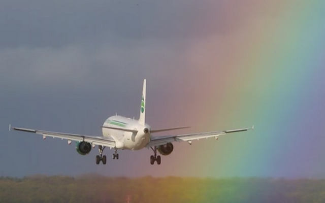 Необычная посадка пассажирского самолета в радугу (ВИДЕО)