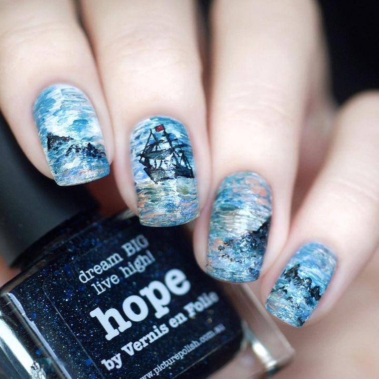Да, такой маникюр способна сделать не каждая девушка, но если вы обладаете художественными навыками, то нарисовать любимую картину на своих ногтях для вас не составит особого труда.