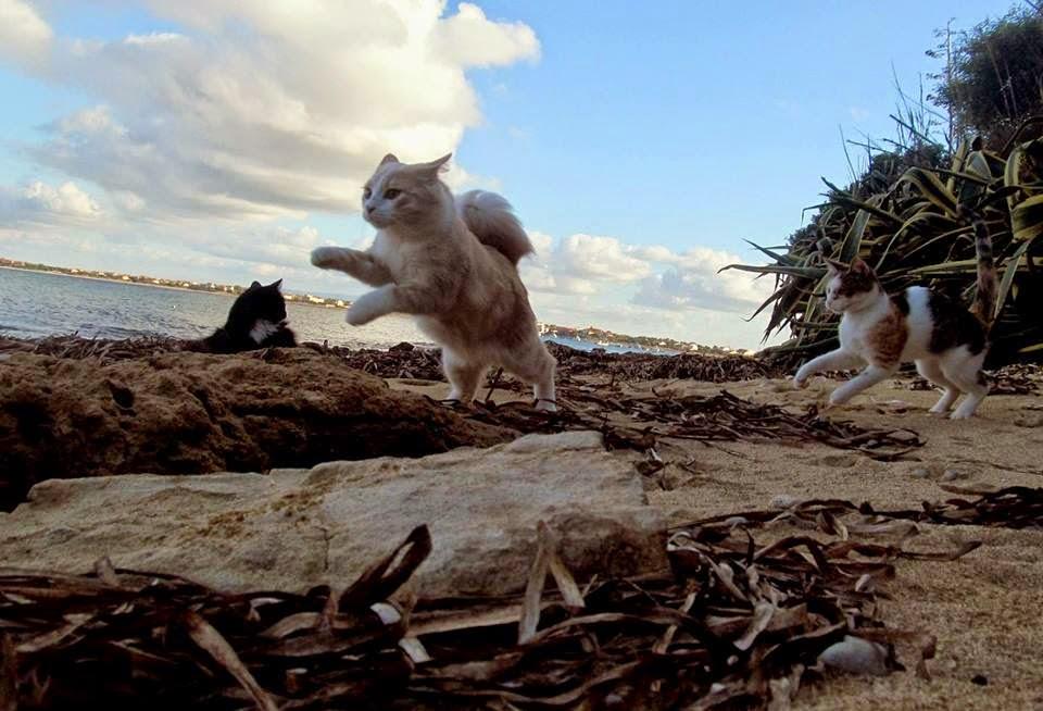 «Людям любопытно посмотреть, как кошки ведут себя рядом с водой, ведь многие думают, что кошки ее ненавидят. Но животные, выросшие на берегу, совсем не боятся моря», — говорит Ацори.