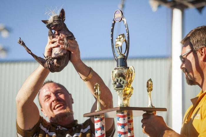 Победителем стала 17-летняя 4-килограммовая помесь Китайской Хохлатой и Чихуахуа по клички SweePee Rambo. Она слепа на оба глаза и носит подгузники. Хозяин собаки Jason Wurtz говорит, что покупал ее в подарок первой жене, но через две недели она отказалась от песика.