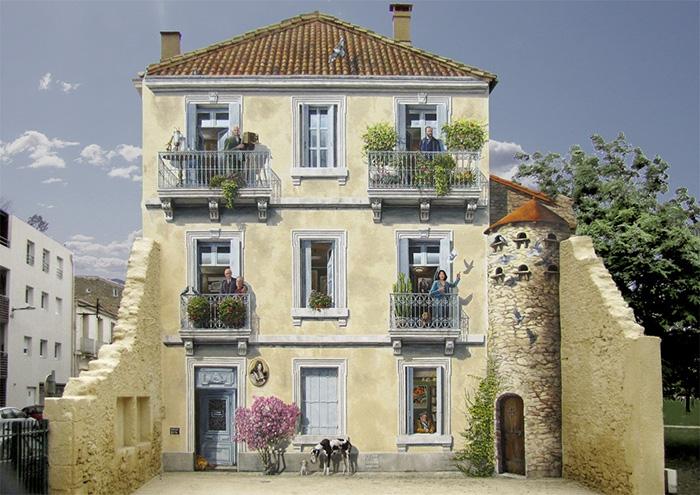 Вместе со своей командой, он разукрашивает фасады домой сверхреалистичными картинами, которые наполняют пустые и скучные городские стены жизнью.
