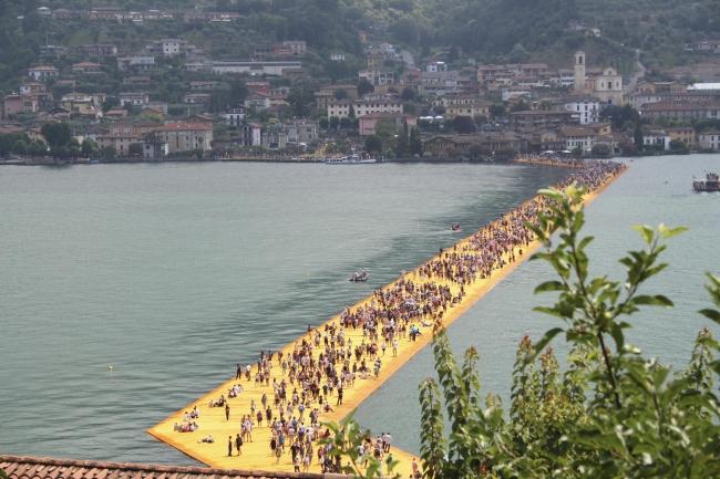 Озеро Изео очень красиво, но не так популярно, как Гарда, Маджоре или Комо. Следующие туда поезда часто почти пусты, среди пассажиров преобладают местные жители. Удивительно, что, чтобы привлечь в это окруженное живописными холмами место зарубежных и итальянских туристов, оказался нужен человек издалека. Несмотря на мировую славу Христо, коммуна не до конца верила в успех предприятия и, когда инсталляция была открыта, была откровенно удивлена наплывом желающих ее увидеть. Не стоит и говорить, что в связи с этим фактом организация транспорта, парковочных мест, очередей, обеспечение указателями и даже санузлами оказались из рук вон плохи.
