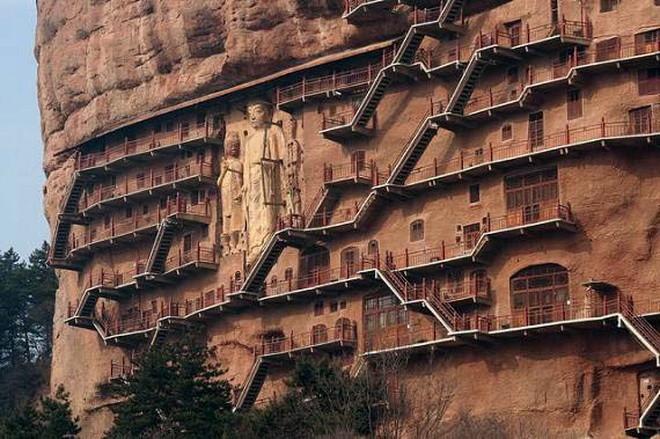 Гора Майцзишань, по наименованию которой и назван комплекс, расположена на северо-западе страны, в округе Тяньшуй. Монастырь полон высеченных из камня и сделанных из глины статуй, а также многочисленных фресок, общая площадь которых около 1000 кв. м. При этом самые ранние из статуй имеют явно выраженные индийские или азиатские черты – явное влияние переселенцев с соответствующих мест.