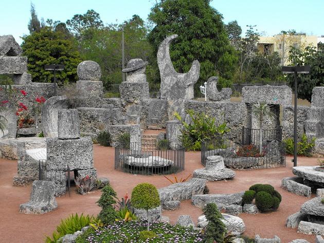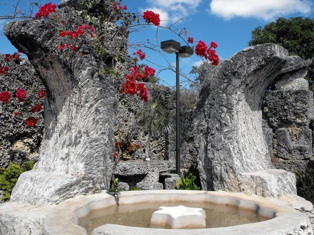 В Коралловом замке все создано из кораллового известняка, из-за чего он и был так назван. Замок окружают стены в 2,5 метра высотой, входом служат огромные каменные ворота, одна дверь которых весит 10 тонн. На территории в 10 акров разместилось множество скульптур, вырезанных из известняковых монолитов. Главное внимание, конечно, Башне, прежнему жилищу хозяина – Башня сложена из отдельных известняковых блоков, а ее общий вес составляет 243 тонны. Самое высокое сооружение Замка – «Обелиск» высотой 12 метров и весом 28,5 тонн. Из множества каменных композиций выделяются скульптуры Луны, Марса и Сатурна, у которого, кстати, имеются все его кольца. Тут же стоит каменный телескоп, всегда направленный на Полярную звезду, изящный Фонтан, скульптура «Полумесяц ислама».