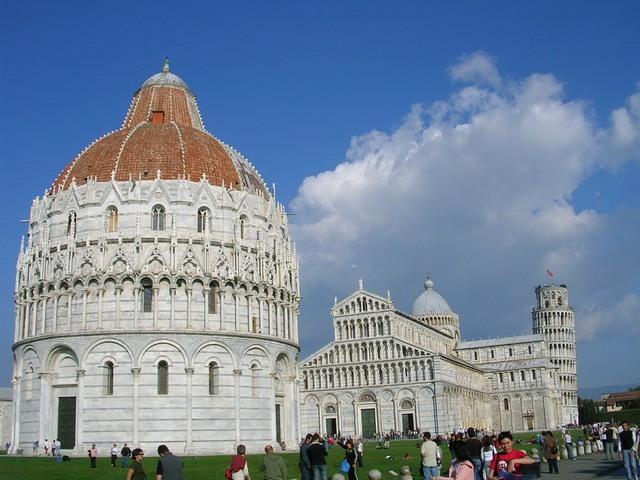 В 1910 году, итальянский писатель и поэт Габриеле д’Аннунцио назвал соборный комплекс в Пизе “Площадью чудес”. С тех пор минул не один десяток лет, но все также завораживает зрелище, открывающееся на главной площади Пизы – огромный, величественный собор, облицованный белым мрамором, солнечные лучи, отражающиеся от его купола, ковер ярко зеленой травы, и беломраморная башня, стоящая под хорошо заметным углом – картина, полная очарования и гармонии.