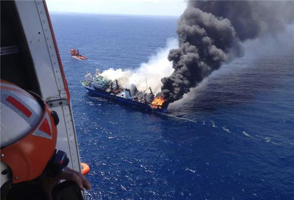 Известно, что судно столкнулось с другим кораблем и загорелось, о чем сообщили представители японской береговой охраны.