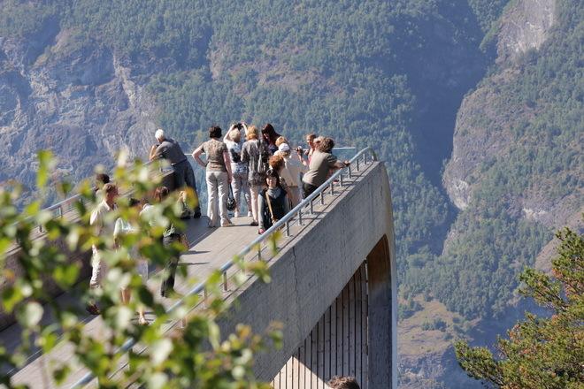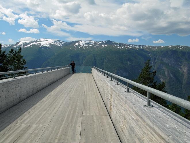 Площадка из дерева и стали появилась в 2005 году с легкой руки архитектора Тода Сондерса и выстроена на высоте в 30 метров от земли, но в 650 метрах над фьордом, одним из красивейших в Норвегии.