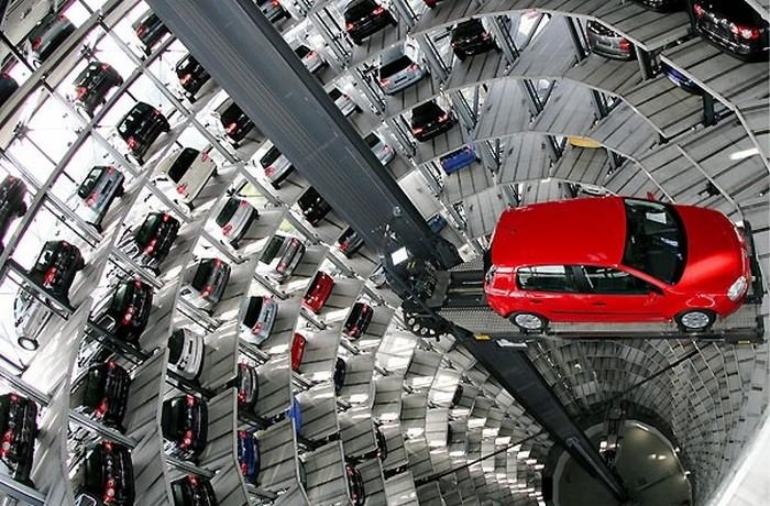 3. Вертикальная автомобильная башня. Германия, Вольфсбург. Здесь расположен музей автомобилей, зона развлечений.