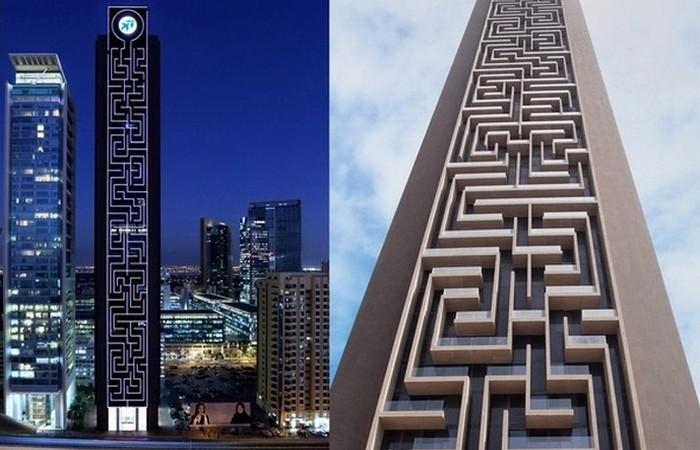1. Самый большой в мире вертикальный лабиринт. ОАЭ. Площадь этого лабиринта составляет 3 947,22 квадратных метра, а расположен он на фасаде 55-этажного здания-башни.