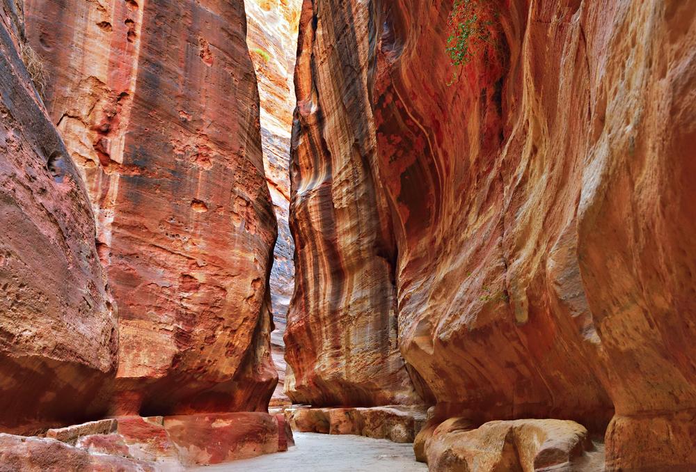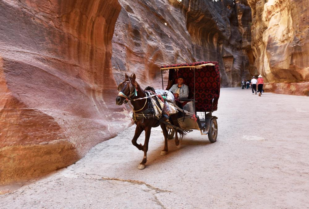 Петра — самое известное место Иордании, которое по популярности, кажется, с лихвой обходит всю страну. Древняя столица Набатейского царства, вырубленная прямо в скалах более двух тысяч лет назад. Это целый архитектурный парк — до известных по множеству фотографий ворот во дворец Эль-Хазне ведет узкое песчаное ущелье, на стенах которого еще можно заметить остатки резных барельефов и следы терракотовых труб — их использовали для водоснабжения.