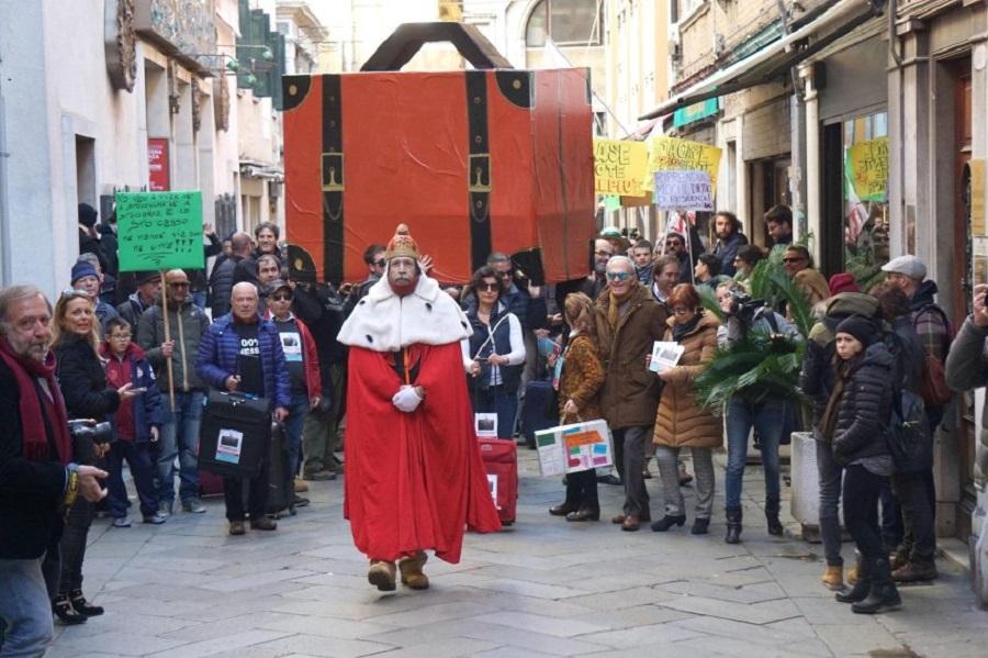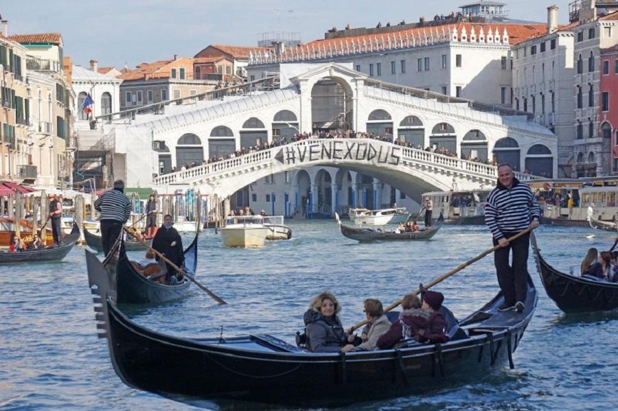 «Если и дальше так пойдет, то мы превратимся в город-призрак, как Помпеи», — говорит 46-летний Маттео Сеччи из группы, которая борется за спасение Венеции. Он и другие жители организовали в субботу шествие под девизом «Исход из Венеции» (Venexodus). Они прошли от моста Риальто до ратуши, держа над головой чемоданы — символ массового туризма.