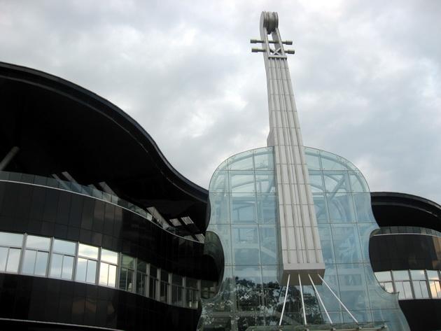 В мире много уникальных, непохожих ни на что зданий и сооружений. Выставочный центр в китайском городе Хуайнань – один из их числа. Однако, неправильно утверждать, что он ни на что не похож. Строение из черного и прозрачного стекла с добавлением современных материалов всем своим видом напоминает рояль и скрипку. Создать нечто, что удивит всех – такова была главная идея данного проекта, и его создателям это удалось.