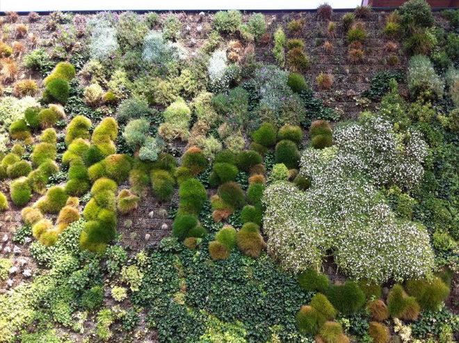 Уникальность данного проекта не только в месте размещения сада и его большой площади, но и в тщательно продуманной комбинации садовых растений, состоящей из чередующихся вечнозеленых и цветущих растений. Это позволяет зрителю круглый год наслаждаться сменой времен года, наблюдая за тем, как меняются цвета по всей стене от ярко-зеленого до белого и темно-красного.