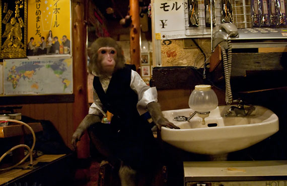 16-летняя Ят-чан и молоденькая Фуку-чан – это пара обезьян, работающая наравне с другими официантами. Они подают перед едой гостям полотенца для омовения рук, также разносят напитки. Обезьяны носят парики, маски и форменную одежду, чтобы своим видом не смущать посетителей.