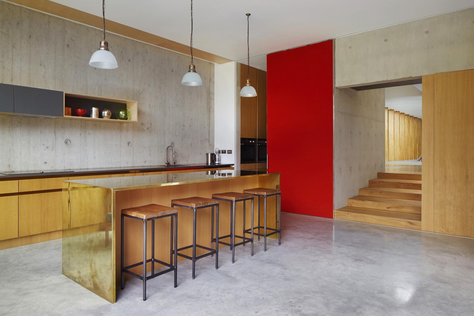 Сделанная на заказ мебель и панели из дубовой фанеры, а также латунные элементы привносят в интерьер тёплые ноты, без которых комнаты казались бы серыми.