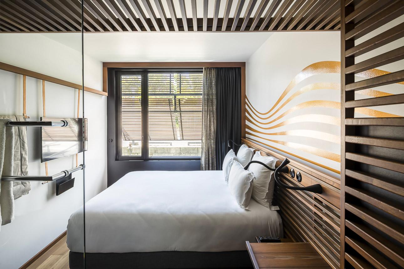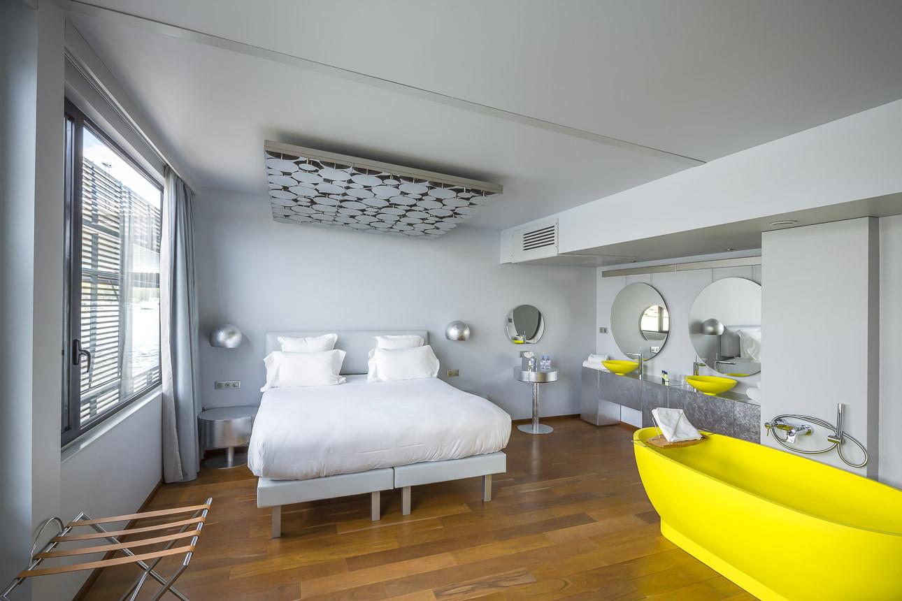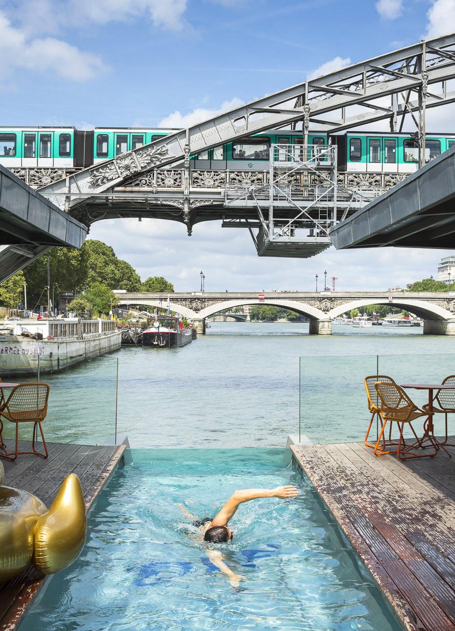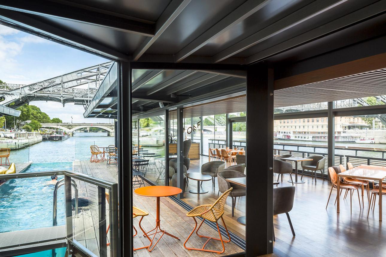 Река стала главным героем этой архитектуры, поэтому все здесь задумано таким образом, чтобы дать возможность гостям прочувствовать реку с максимальной степенью аутентичности: гибкие сочленения корпусов, сохраняющие естественную качку, открывающиеся великолепные виды Сены, длинные трапы, соединяющие отель с набережной, первый этаж, находящийся почти на одном уровне с ватерлинией, пристань на корме. Вечером связь между сооружением и водой усиливается ещё больше благодаря изысканному световому дизайну.