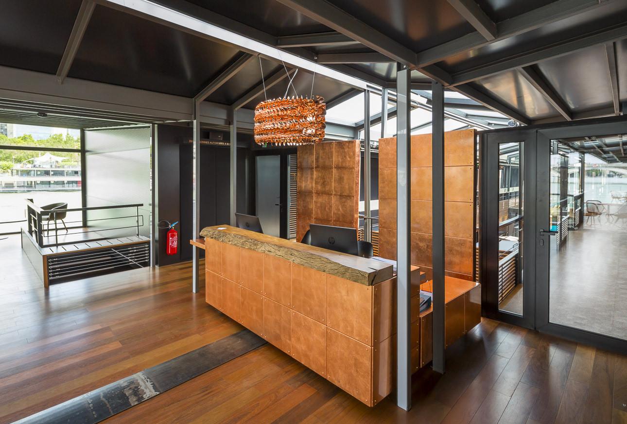 Архитектура отеля представляет собой простую и лаконичную конструкцию на основе двух каркасов, соединённых друг с другом, на которые наложены двухуровневые модули. Сооружение не превышает дозволенной высоты в 6 метров от ватерлинии, чтобы не нарушать непрерывность речного ландшафта.