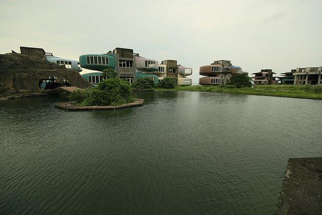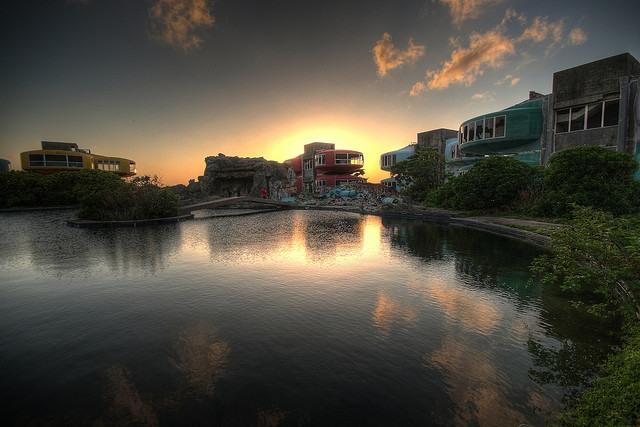 Никакие пришельцы в них, конечно же, никогда не жили. В 1970-е годы здесь, на северном побережье Тайваня, активно строился курорт, обещавший хорошо себя окупить в скором будущем. Однако, в 1980-ом году компания-строитель обанкротилась, все имущество, включая и отель, было арестовано банком, и все дальнейшие попытки превратить недостроенный курорт в пятизвездочный отель не увенчались успехом.