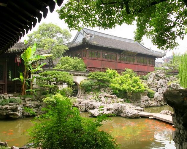 Парк Юйюань выстроен по всем канонам фэн-шуй. Множество отдельных деталей и символов должны, по мнению его создателей, способствовать приближению к гармонии. На сравнительно небольшой площади в 2 га разместились павильоны, залы, внутренние дворики, сады камней, пруды, каналы, арки, мостики, террасы. В саду – 6 частей, которые соединены весьма затейливыми переходами. Разделение парка стенами и галереи между ними – не просто часть художественного замысла устроителей парка, но и возможность дать космической энергии ци возможность ее «правильного» течения. Снаружи парка располагается пруд Лотоса, где стоит старинное двухэтажное здание, «Сердце озера» (Хусиньтин), также построенный по канонам фэн-шуй. Состоящий из трех строений, он символизирует триаду, единство трех частей – энергии неба, земли и человека.