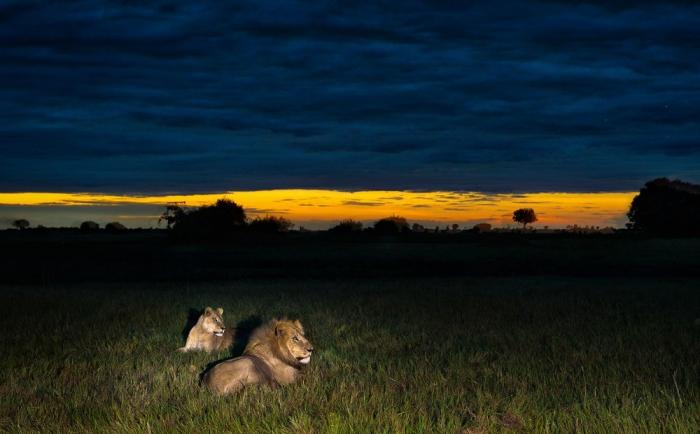В Африке и днем небезопасно снимать, а ночью, когда хищники выходят на охоту, вообще рискованно. Но глядя на эти красивые кадры, понимаешь, что ради этого стоило рисковать.
