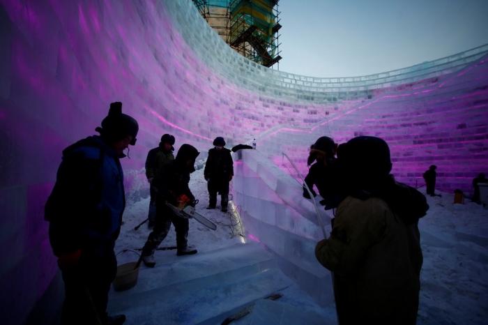 Огромный снежно-ледяной город круглосуточно строят каждый год около 10 000 человек. В это время года температура обычно составляет от −10С до −20С — идеальные условия для создания ледяных скульптур.