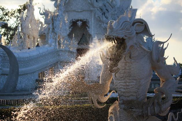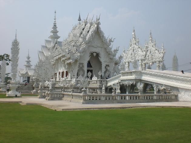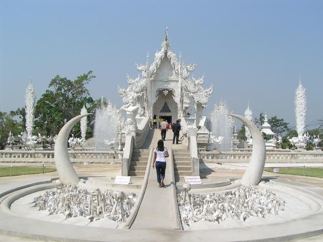 Его Белый Храм – это символ рая, куда и ведет узкий мост через реку, полную грешников. Важно знать, что, войдя в Храм по мосту, обратно по нему же возвращаться уже нельзя – попадаете обратно в ад. Каждая скульптура, каждая деталь в этом резном белоснежном великолепии несет определенный смысл и назначение, начиная с белого цвета самого Храма – символа чистоты Будды, и стекла, вкрапленного во все вокруг – символа мудрости Будды, которая ярко светит по всей Земле и Вселенной.