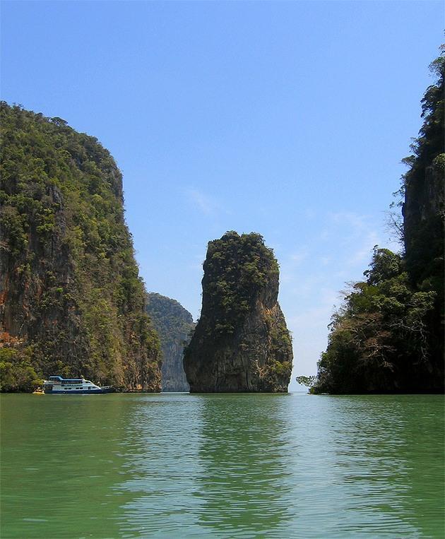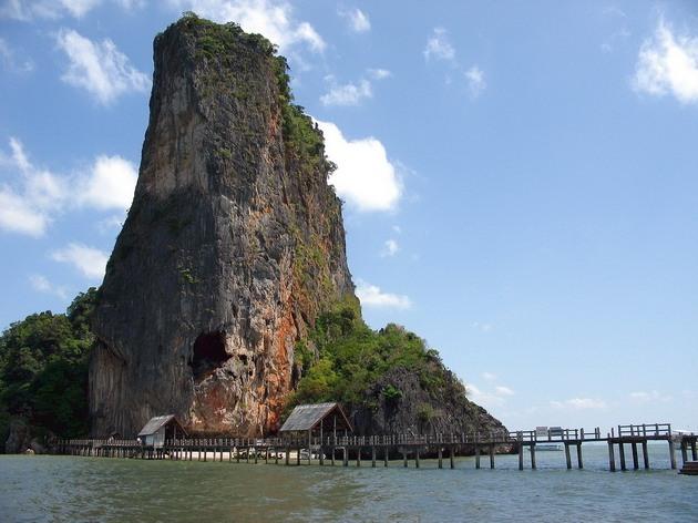 Имя суперагента 007 остров в виде ногтя высотой в 20 метров, убранный зеленой шапкой, получил благодаря тому, что некогда принимал участие в съемках одного из фильмов бондианы – картины “Человек с золотым пистолетом” 1974 года. С тех пор эти места получили всемирную известность, и сюда зачастили не только путешественники со всего света – полюбоваться незабываемыми видами, но и киногруппы, часто выбирающие окружающие завораживающие ландшафты в качестве сцены для съемок.