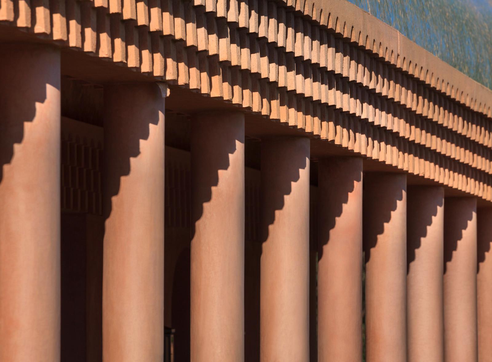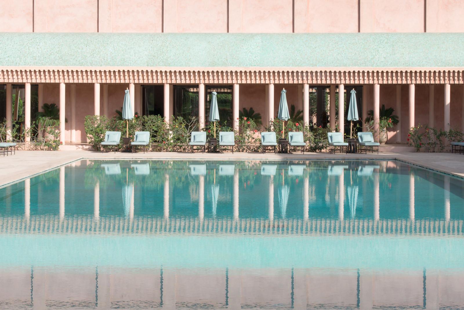Все павильоны имеют бледно-персиковые фасады. Стены построек обработаны специальным составом, используемым для гидроизоляции хаммамов. Внутри все номера оснащены кондиционерами и каминами в гостиной зоне. Помимо двуспальной кровати, в комнатах имеются кушетка для дневного отдыха, рабочий стол с отделкой из марокканской кожи и стул из вишнёвого дерева. В ванных красуется отделка из зелёного мрамора, а берберские ковры украшают пол. Из каждого Павильона через раздвижные двери из стекла и кедрового дерева предусмотрен выход в приватный внутренний двор с фонтаном, откуда открываются виды либо на поля гольф-клуба, либо на оливковые рощи. В некоторых номерах есть бассейны и сады.
