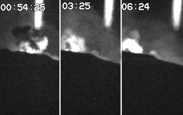 Судя по снимкам, странный световой столб двигался справа налево, постепенно теряя свою яркость. Специалисты опечалены тем, что камера не смогла зафиксировать верхнюю часть загадочного столба, поэтому в целом сложно себе представить, что же это такое.К примеру, ученые-уфологи уверены, что Этна является порталом в параллельный мир, как и мексиканские вулканы Колима и Попокатепетль либо это вход и выход в подземную базу инопланетян.