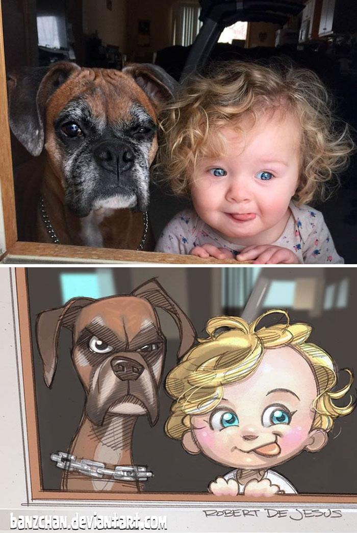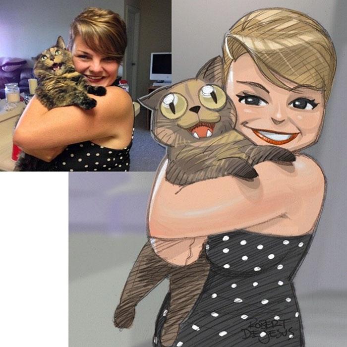 Иллюстратор превращает фотографии людей и их питомцев в забавные карикатуры (ФОТО)