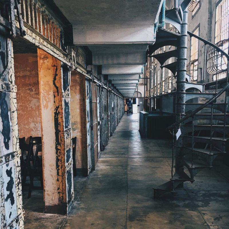 Самые популярные места для снимков: камеры и детали быта заключенных, тюремный двор с видом на залив и разрушающиеся корпуса.