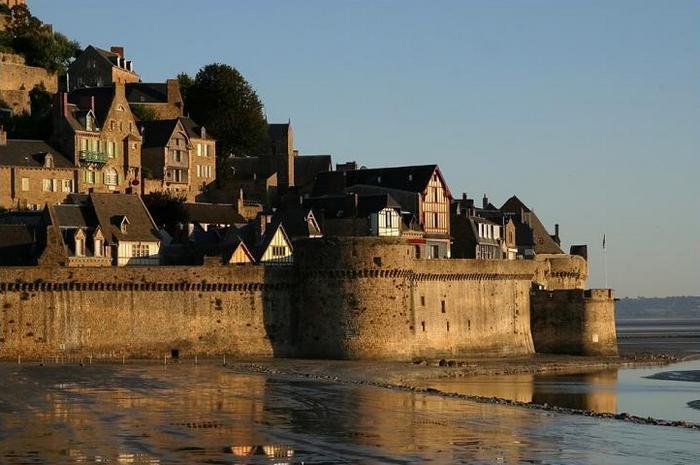 Расположенный на скалистом острове, посереди бухты Мон-Сен-Мишель (Пролив Ла-Манш) гордо среди отмелей расположился замок Мон-Сен-Мишель. Точнее сказать это уже не просто замок остров-крепость, достаточным количеством зданий, способных в случае нападения уберечь своих жителей.