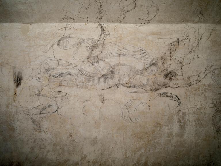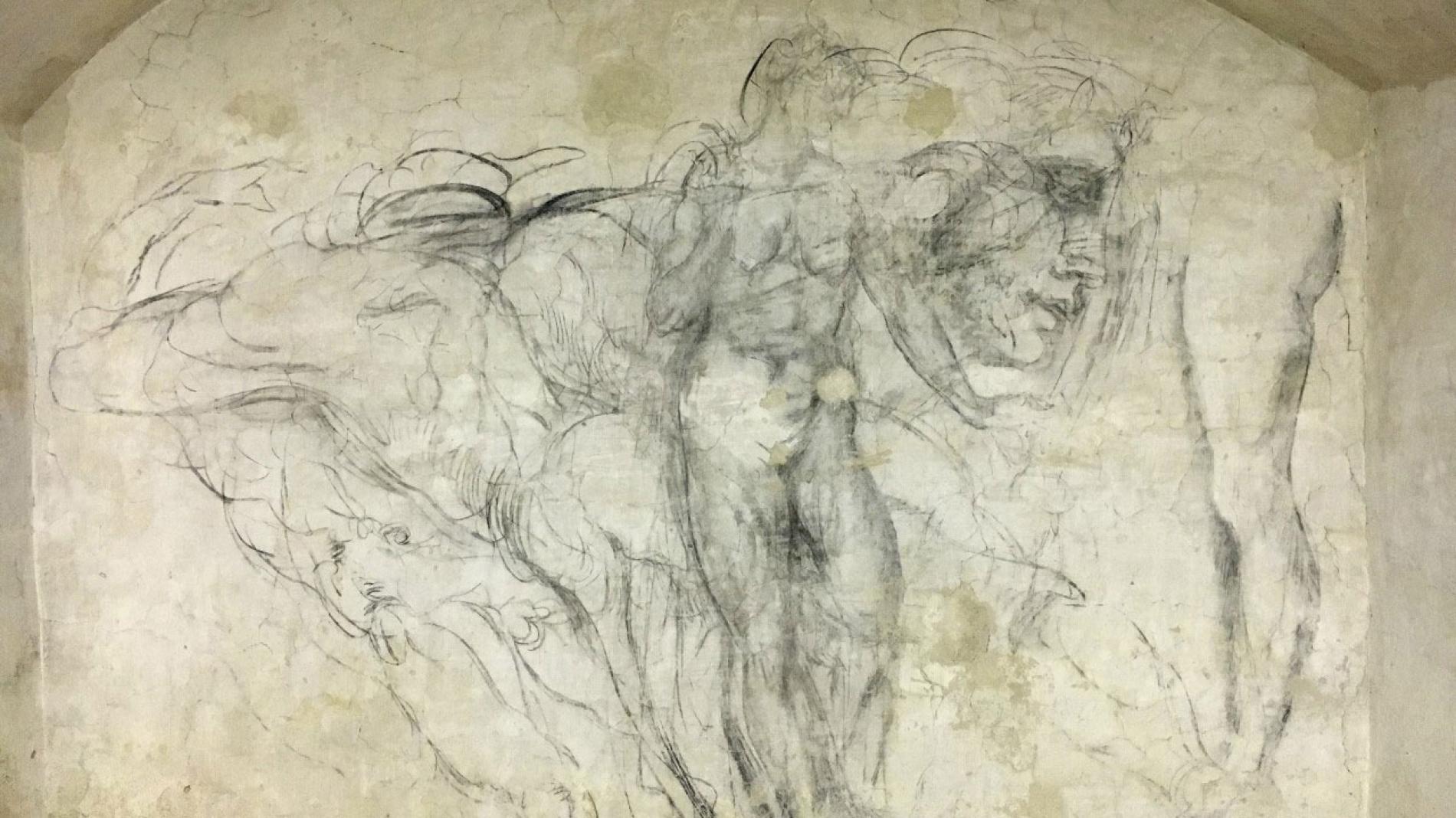 Рисунки находились на стене комнаты, расположенной за потайной дверью в шкафу. Они были выполнены углем и мелом и спрятаны под слоем штукатурки. После снятия штукатурки исследователи обнаружили десятки изображений, некоторые из которых выглядели как наброски некоторых работ Микеланджело, например, скульптуры в ризнице, расположенной в той же капелле. Другие рисунки изображали людей, летающих или падающих с неба.