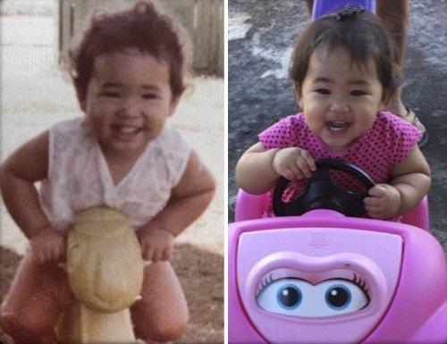 В этой коллекции фотографий вы увидите детей и родителей, сфотографированных в одном и том же возрасте, похожих друг на друга как близнецы!