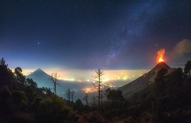 У Альберта была четкая творческая задумка: сделать уникальный кадр, на котором будут запечатлены одновременно действующий вулкан и млечный путь.
