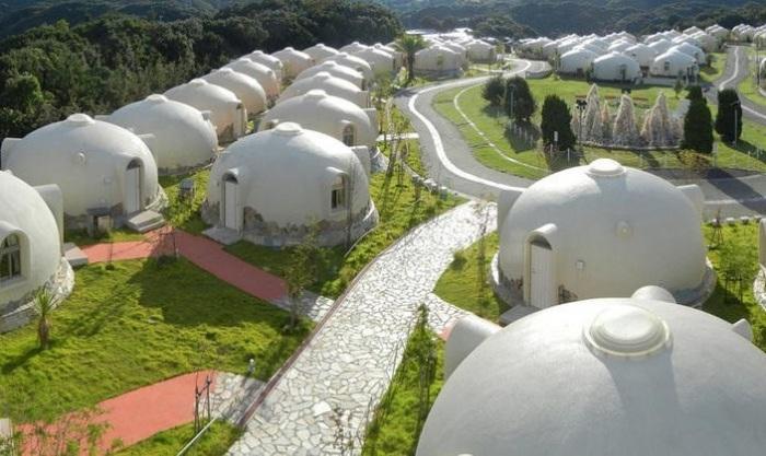 Вот уже 15 лет японская компания Japan Dome House занимается производством купольных домов из пенопласта. Но особый интерес возрос к ним после землетрясения магнитудой 7 баллов, случившегося в Кумамото в апреле 2016 года. Тогда разрушилось множество зданий, тысячи людей остались без крова. Примечательно то, что целым и невредимым остался курорт Aso Farm Land, состоящий из 480 домов, построенных из пенопласта.