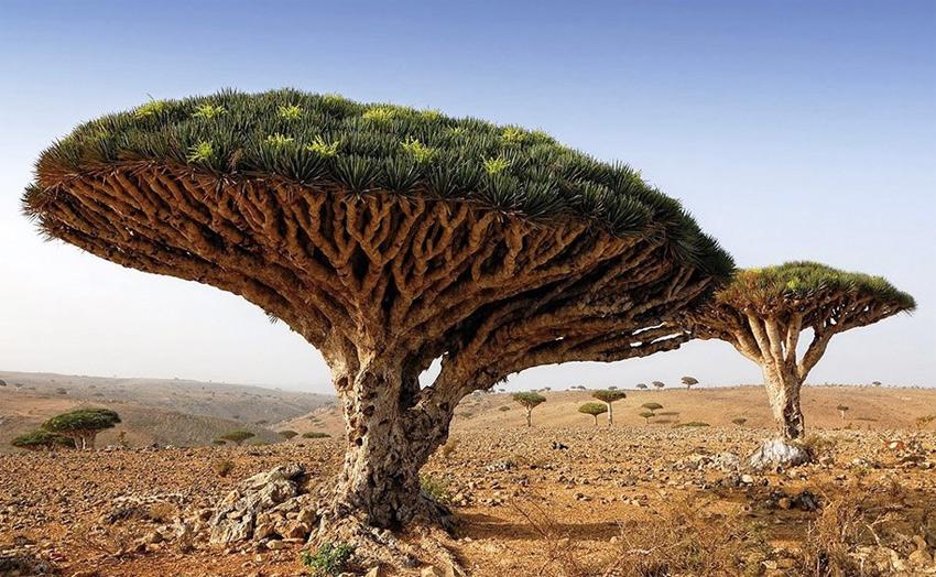 Символом Сокотры является дерево Драцена киноварно-красная. Крона дерева, высота которого может достигать до 10 метров, по форме напоминает гриб. Если кору надрезать, из дерева начнет вытекать красный сок, который быстро застывает. Местные широко используют его как косметическое и лекарственное средство.