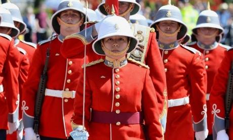 Великобритания до 2016 года запрещала женщинам принимать участие в боевых действиях, в связи с чем женщины-военнослужащие не могли возглавлять охрану Букингемского дворца и других королевских объектов. В Канаде этот запрет был снят еще в конце 1980-х.