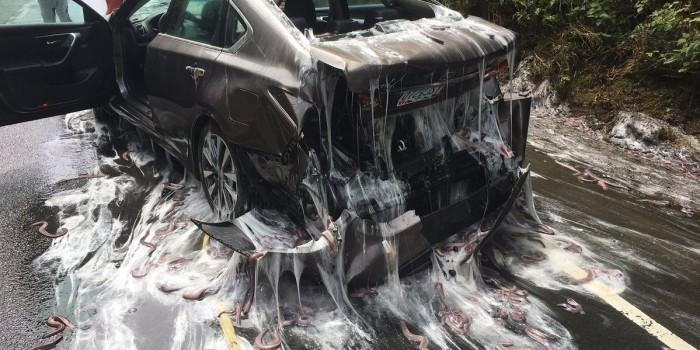 Слизь везде: в США перевернулся грузовик с угрями (ФОТО)