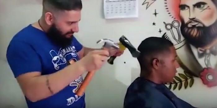 Бразильский парикмахер стрижет клиентов с помощью молотка и топора (ВИДЕО)