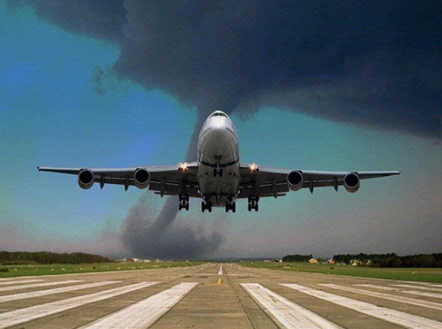 В Сети появилось видео посадки самолета во время урагана (ВИДЕО)
