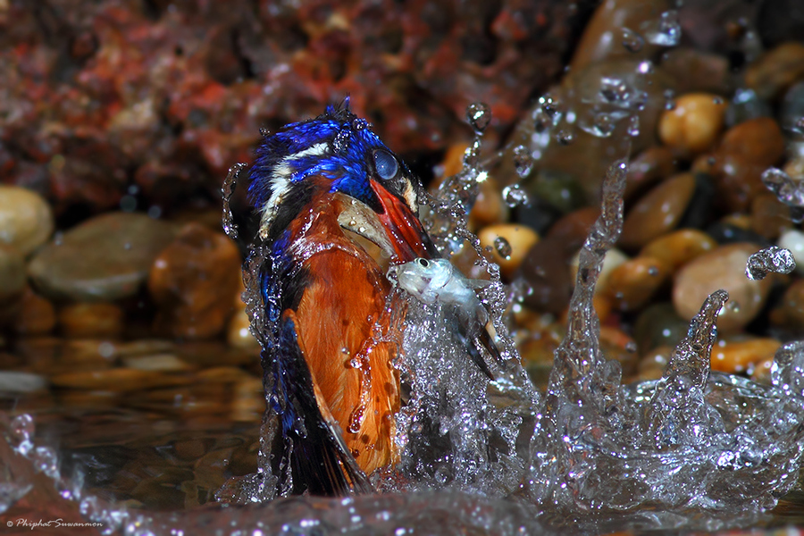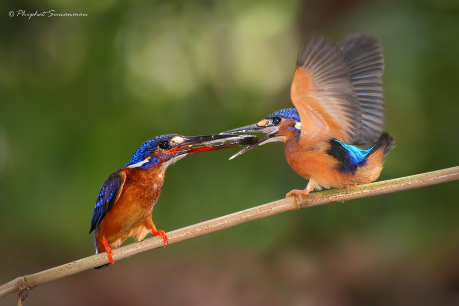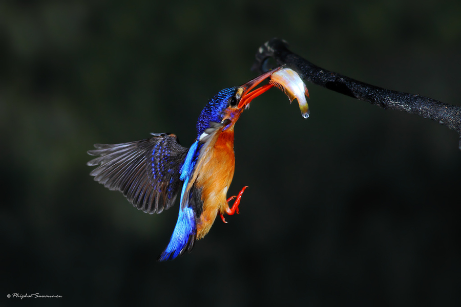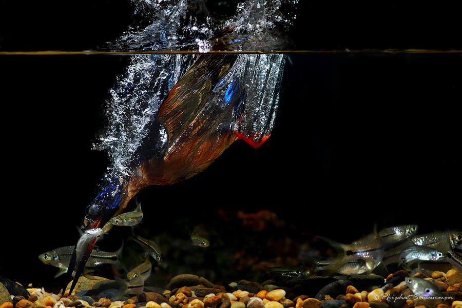 Тайскому фотографу Филфату Суванмону удалось сделать фантастически редкие кадры. Он запечатлел рыбалку голубого зимородка.