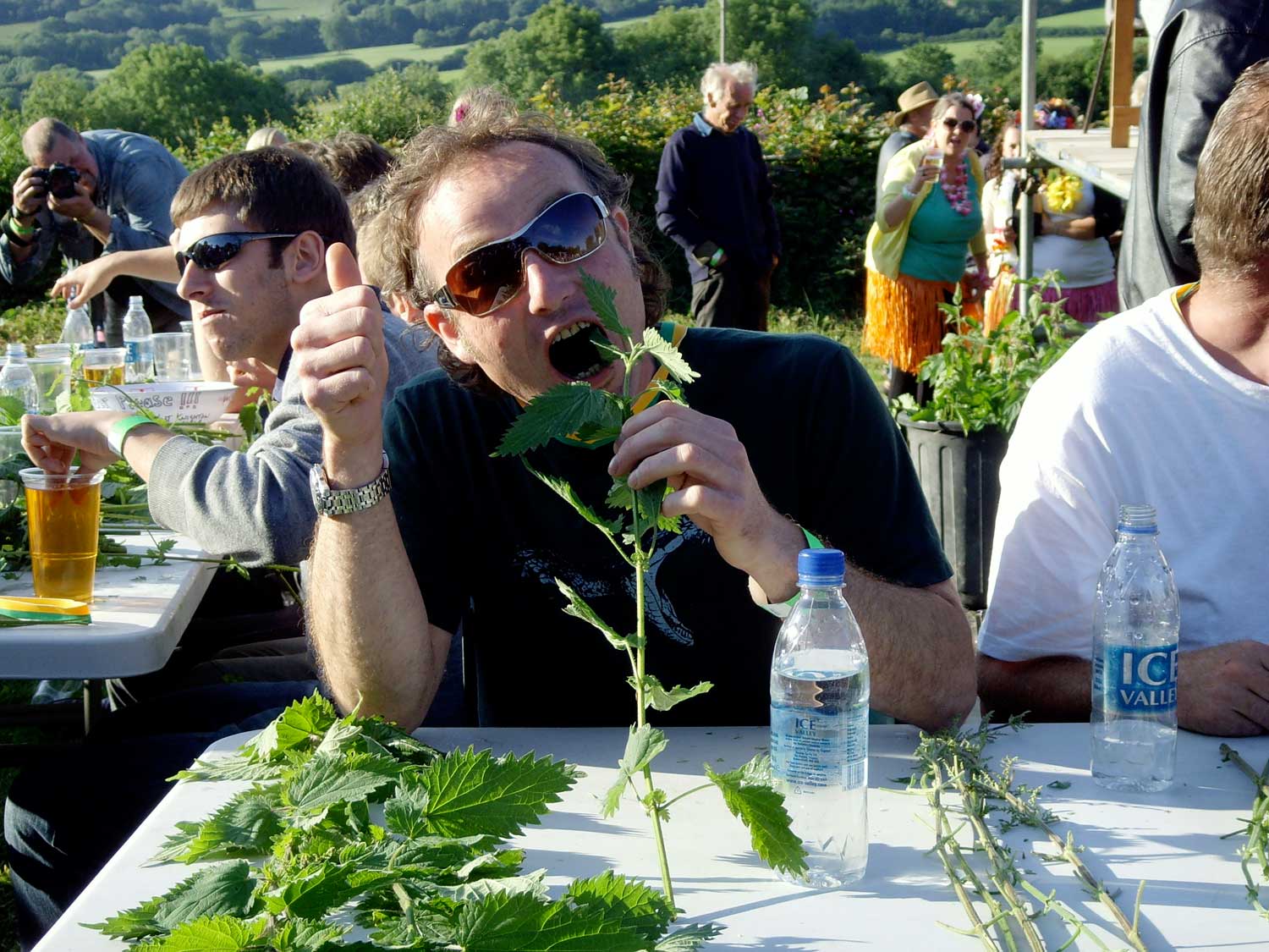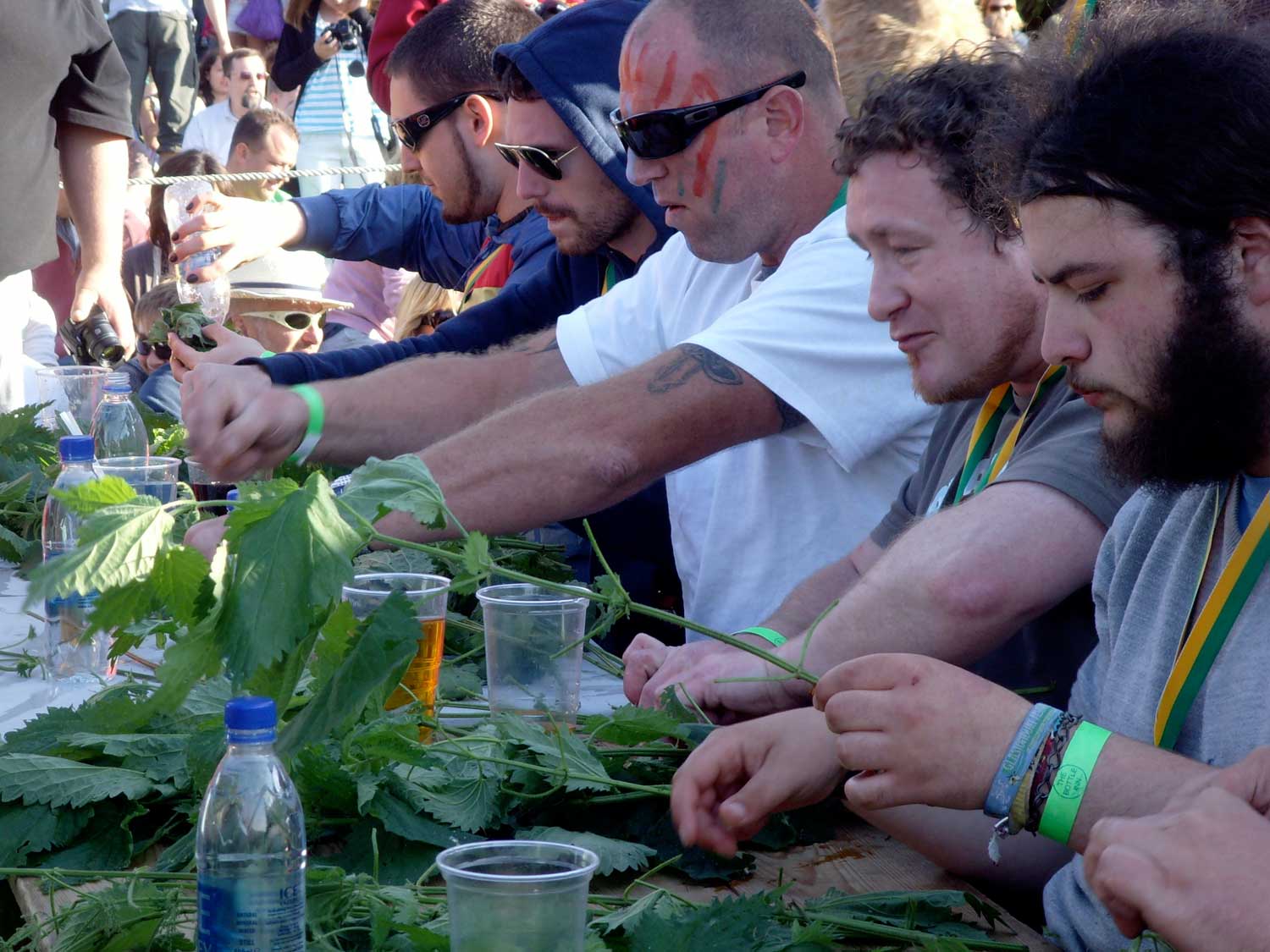 Наверно, это один из самых безумных и странных фестивалей мира. В ходе соревнований всем участникам выдают ветви крапивы длиной около 60 сантиметров. После чего начинают отсчет времени. Участники из разных стран демонстрируют свою выносливость и храбрость, поедая жалящую крапиву. Спустя час судьи меряют общую длину стеблей крапивы, которые очистили от листьев. Победитель тот, кто очистит больше всего стеблей! А потом все радуются и показывают свои пальцы и языки коричнево-черного цвета.