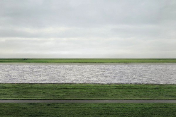 Самое удивительное в фотографии то, что она была сделана при помощи «Фотошопа»: изначально фон «портили» электростанция, портовые сооружения и выгуливающий собаку прохожий — всё это Гурски удалил, оставив только собственно Рейн и дамбы.