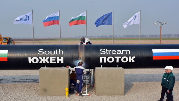 Первый сварной шов как символ начала строительства российского трубопровода через территорию Болгарии был сделан в октябре 2013 года при участии представителей российской компании "Газпром".